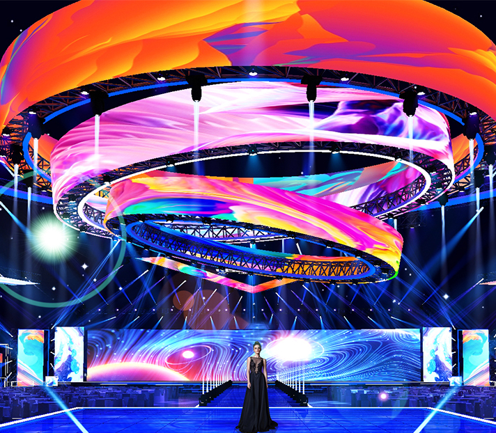 •Stage Backdrops: P3-P5 flexible screens form concave/convex Arc-shaped stage background,synchronized with lighting