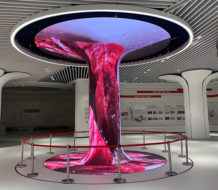 •Tech Exhibition Core Installations: P1.9-P2.5 ultra-HD trunk screens (800mm diameter) display corporate "timeline trees",