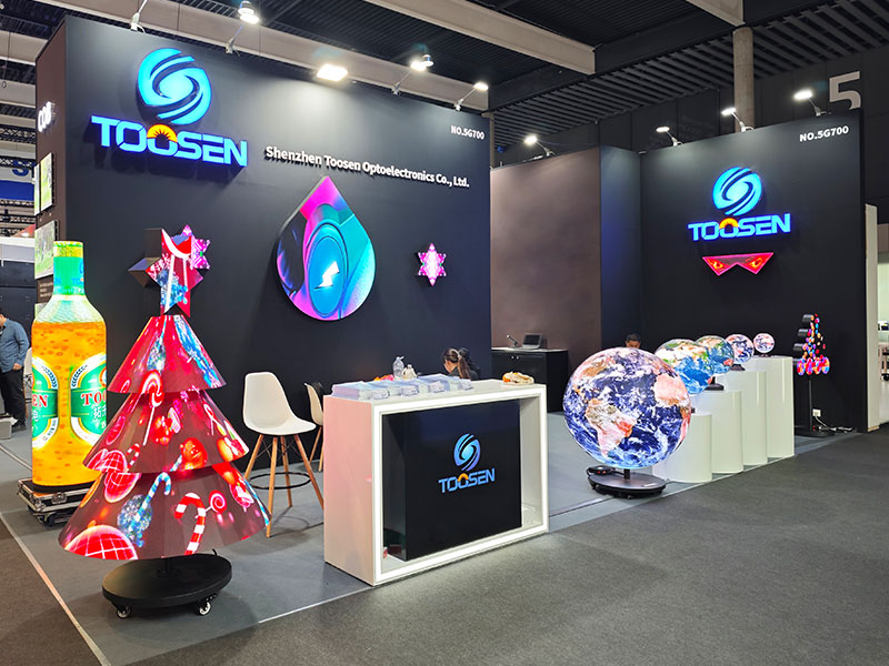 深センTOOSEN光電科技有限公司は2014年に設立され、LED表示製品及び応用解決策分野のリーディングサプライヤーであり、研究開発、生産、エンジニアリング及び識別を一体とした企業です。私たちは様々なタイプの顧客のニーズを満たすことができます。私たちは全方位の屋内及び屋外LEDディスプレイ、異形LEDディスプレイ、球形LEDディスプレイを提供しており、これらの製品は広告、高速道路、コンサート、ショッピングモール、銀行、スタジアム、展示会など様々なシーンで幅広く利用されています。