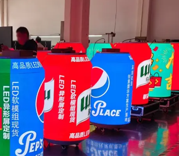 они могут быть адаптированы в изогнутые купольные экраны (P3-P5) для атриумов торговых центров или нерегулярные дисплеи LOGO (P4-P8) для брендовых магазинов