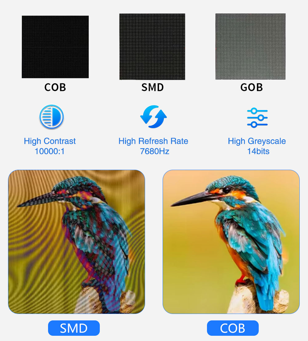 & 불;매우 높은 새로 고침 속도: 3840Hz-7680Hz 새로 고침 속도는 완벽한 성능을 보장하기 위해 모션 매블러와 flicker를 제거합니다