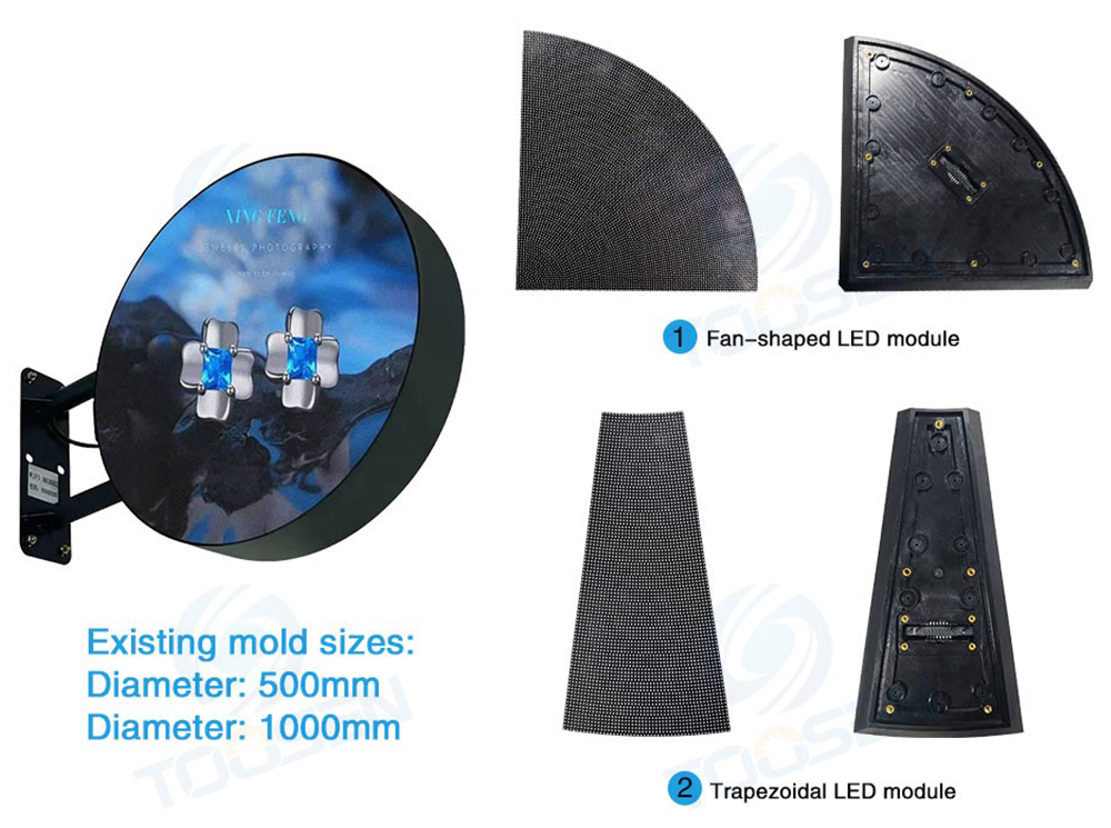 The LED dish circle display is assembled with special LED modules of different specifications.
