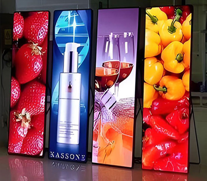 Product Features:Poster LED displays are slim, vertical LED screens designed to fit seamlessly in storefronts, mall corridors, office lobbies, exhibition booths, and pop-up shops. They combine high-resolution imagery with vibrant color reproduction to create attention-grabbing displays for advertising, promotions, or branded content.