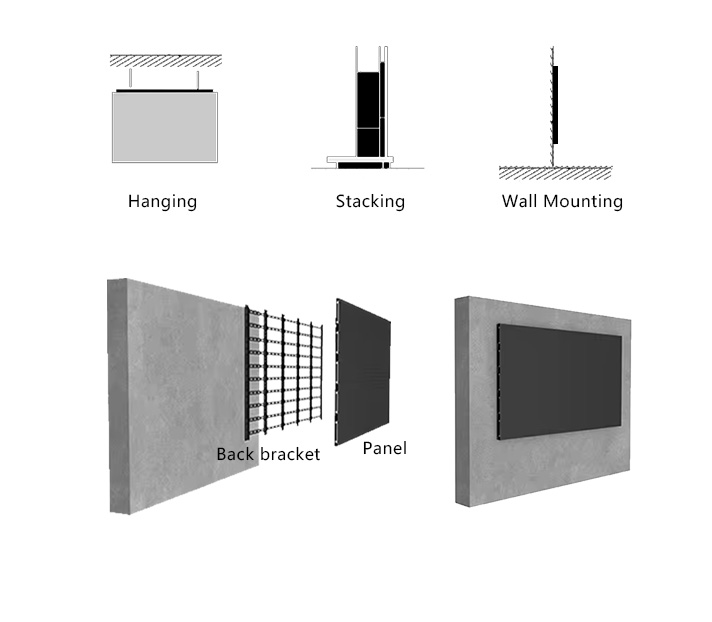 close-viewing HD conferences (P1.2-P2.5) .•Standardized Modular Design: Two cabinet sizes (640×480mm/600*337.5mm)