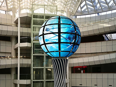 The hotel selects spherical LED display to enhance the space style with its unique shape. Panoramic display helps brand promotion and activity promotion, and intelligent interaction can also optimize the guest experience.