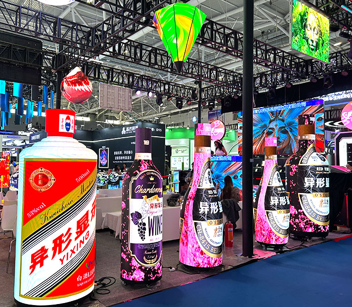 an elegant ambiance. At wine festivals or tastings, mobile bottle screens (supporting asynchronous control) are flexibly deployed