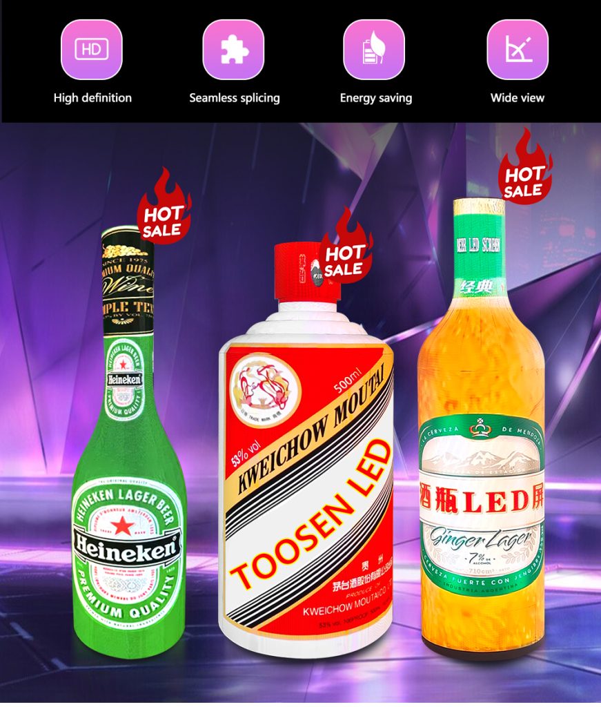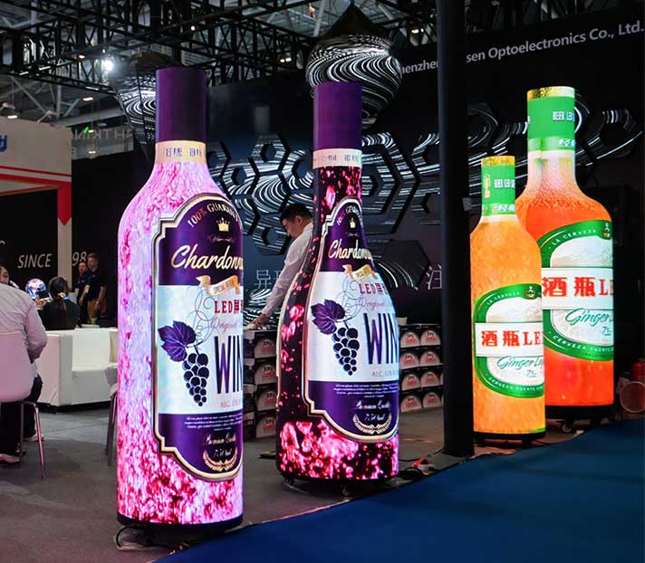 TOOSEN Wine Bottle LED Screens, shaped like wine bottles or cans, are perfectly suited for high-end scenarios: In luxury retail,