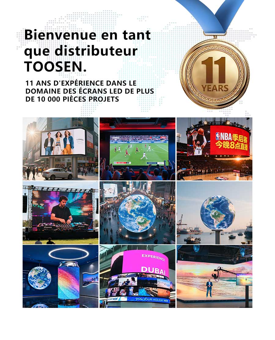 TOOSEN se spécialise dans les écrans LED personnalisés. Soutenus par une équipe de R&D professionnelle, nous offrons des solutions sur mesure avec des composants premium et une technologie avancée pour une qualité exceptionnelle. De la conception au support après-vente, notre service sans faille fait de nous votre partenaire idéal.