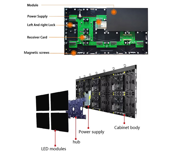 T全前置维护设计:LED模块、电源和接收卡均位于前置维护柜内,模块之间采用无线连接。智能调节:独特的对齐功能确保视频墙完美对齐且无缝,屏幕平面度公差小于0.1毫米。