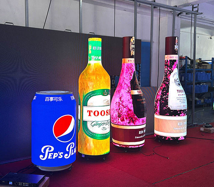 我们采用酒瓶和易拉罐造型的LED屏幕,将创意与卓越技术完美融合,打造令人难忘的品牌体验。欢迎联系我们的团队,获取定制解决方案。